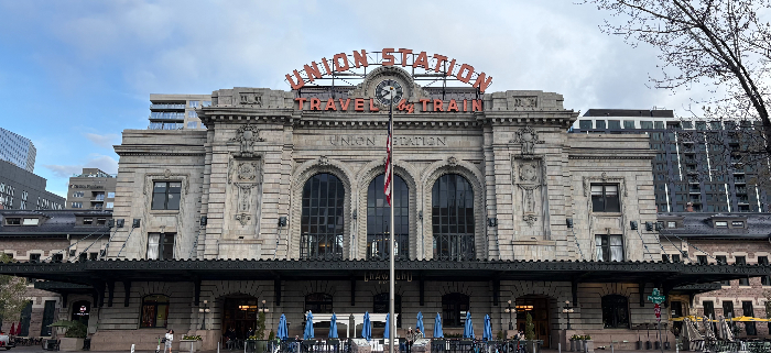 I move to a table and have my breakfast. A mother and father with their two young sons sit at the table across from me. The younger one says to his dad “I’m cold.” I offer him one of my blankets, which starts the conversation flowing. I learn from the mom that they are taking the train from Chicago to Emeryville where they will rent a car and drive to Salinas. They are going to her grandfather’s funeral. He grew up in Salinas and moved to Chicago as an adult, but took the occasional train trip back to his roots. He wanted to do it one more time but wasn’t able to. They are taking this train trip in his memory. I have a very pleasant conversation with the parents while the kids happily eat chuchitos, a small tamal popular in Guatemala and El Salvador. Our conversation is interrupted because the train arrives in Denver very early. I quickly pack up my belongings and head through the station into town.