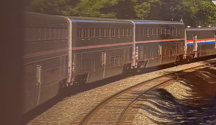 At 7AM we cross the border into Oregon. A half mile outside of Klamath Falls, we come to a standstill to make room for a freight train. Klamath Falls is the first smoke break since Sacramento, and some of the passengers are feeling the nicotine twitch. One of them is caught by an Amtrak employee ,opening a window down in the luggage area. He got a couple of puffs in before being sent back upstairs. After a brief stop in Chemult, we begin our ascent of Oregon’s Cascade Mountains. This area is remote, and cell service is a distant memory for well over two hours. With no electronic distraction, I look out the window. The scenery is nice, but it is much more subtle than the ‘Look at me!’ geology of Utah. After crossing the mile-high Cascade Summit we begin a winding descent, traveling through many tunnels and making hairpin (for a train) turns. I can see the front of our train through the window.