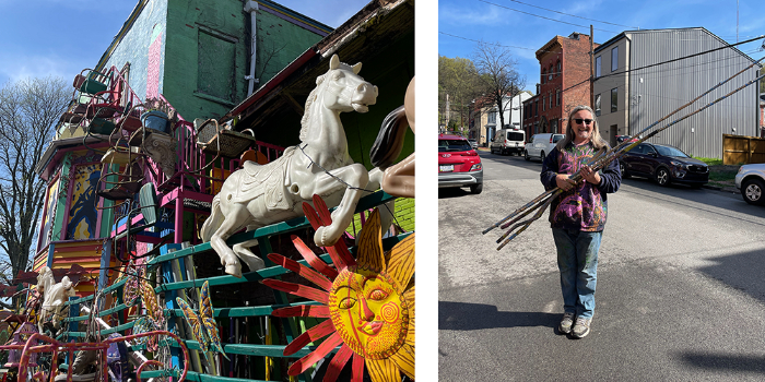 None, however, are more brightly colored than Randyland! Walking towards the bright yellow building, I see a man carrying a pile of sticks, reminiscent of the Led Zeppelin album cover. I ask him if he is the owner. He says “Yes, I’m Randy. I’m autistic and this place is my therapy.” It seems to be therapy for lots of folks. Walking through the grounds I meet people from all over the country who have come to see it. There is even a young couple from France. Randy suggests that I visit The Mattress Factory, and if he thinks it’s cool, then that is where I’m going. As luck would have it, The Mattress Factory is only a four-minute walk. The name was borrowed from its former use as a warehouse for the Stearns and Foster mattress company. It is an avant-garde museum with mind-bending art installations. The best way I can describe it is that it’s like walking through a fever dream, but in a good way. It encompasses several buildings including some dilapidated townhouses. The level of dilapidation has been preserved as part of the art.