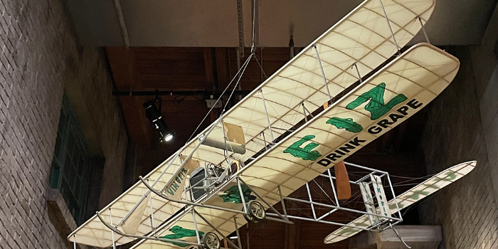 After going down the incline, I pick up my luggage and head to Pittsburgh Union Station. Midnight is still eight hours away, so I find a place to store my luggage and walk into the Strip District, an aptly named strip of land between the base of the Hill District and the Monongahela River. I’ve heard that it is trendy and a good place to look for dinner. It’s still a bit early to eat. I see a sign for the Senator John Heinz History Center. Inside is a replica of the Wright Brother’s 1911 Vin Fiz Flyer, the first airplane to cross the United States. I remember seeing the original in the Smithsonian when I was a home-sick sixteen year-old, and cancelling my train trip across the continent. William Randolph Hearst, the newspaper baron, had offered a $50,000 prize to the first person to make the journey in less than 30 days. Calbraith Perry Rogers, who lived in Pittsburgh, attempted to win the prize in the Fiz but it took him 49 days. Actual flying time was only 84 hours, but he was delayed by 75 crash landings including one that put him in the hospital for 3 weeks with a brain concussion and twisted ribs.