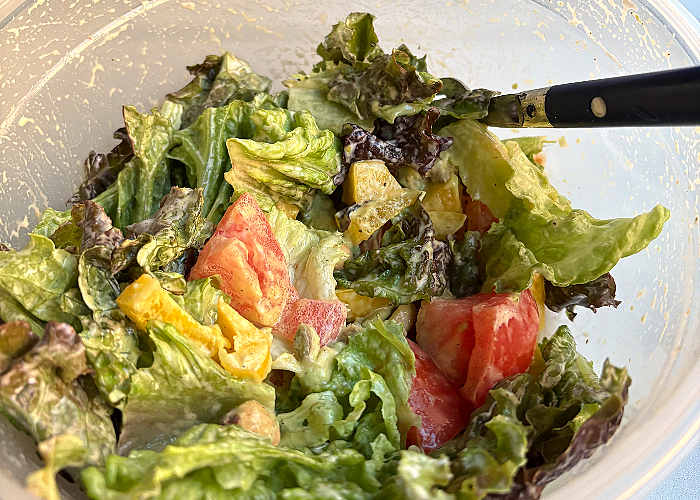 I still have an empty seat next to me but decide to find a table in the Sightseer Lounge car. After a couple of hours, the car starts to fill up. I notice a woman looking for a place to sit down, so I offer the other side of the table. Cindy lives on the East Coast but has kids and grandkids on both sides of the country. Lunchtime is approaching and my Amtrak cooler has the answer. I offer Cindy a chicken sandwich. I am thrilled with my cooler! It has proven to be worth its weight in sautéed chicken, pesto pasta, cheese, lettuce and veggies.